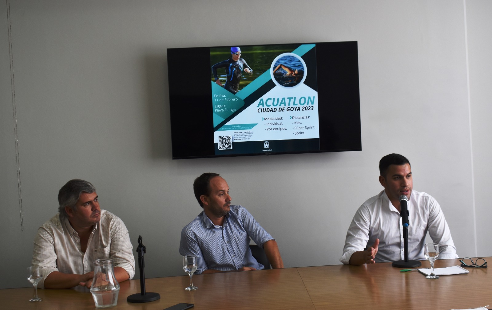 La Municipalidad de Goya presentó este miércoles, el Programa Juegos de Playa 2023 y el Acuatlón Ciudad de Goya. En la ocasión y ante la prensa local se dieron precisiones de esas actividades. El acuatlón se hará el sábado 11 de febrero.