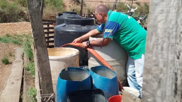Debido a la sequía en la región, el Municipio de Santo Tomé está proporcionando agua a las familias más necesitadas utilizando un camión regador...
