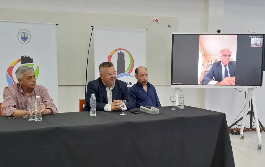En el encuentro estuvieron presentes, el Intendente Juan Carlos Alvarez, el secretario de legal técnica Daniel Cristaldo, el director de la Escuela Correntina de Pensamiento, Francisco González Cabaña y en comunicación sincrónica desde Montevideo el Embajador Argentino Martín García Moritán.