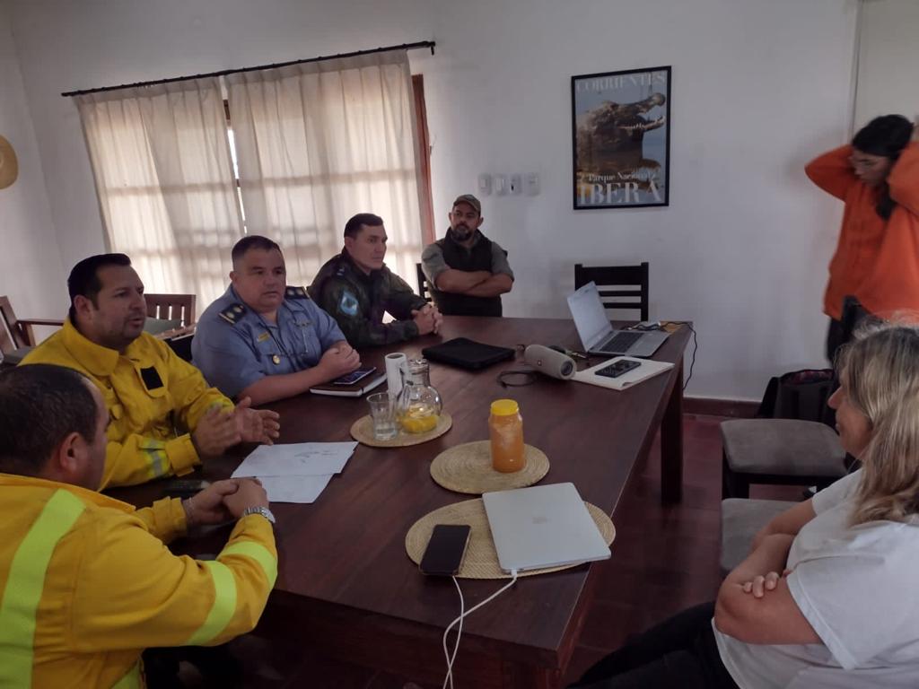 En la reunión estuvieron presentes representantes de la Fundación Rewilding, de parques nacionales y provinciales, la policía local, el oficial principal Barrios del PRIAR, bomberos voluntarios y referentes de las Brigadas Forestales BRIF.