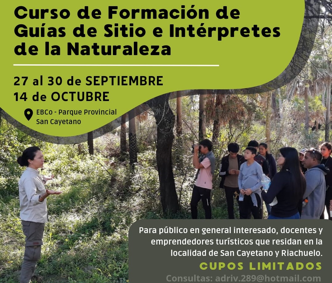 La Dirección de Parques y Reservas de la provincia de Corrientes, en colaboración con la Estación Biológica de Corrientes (EBCO) y el Parque Provincial San Cayetano (PPSC), anuncian la apertura de inscripciones para un emocionante curso de capacitación destinado a futuros Guías de Sitio en el Parque San Cayetano.
