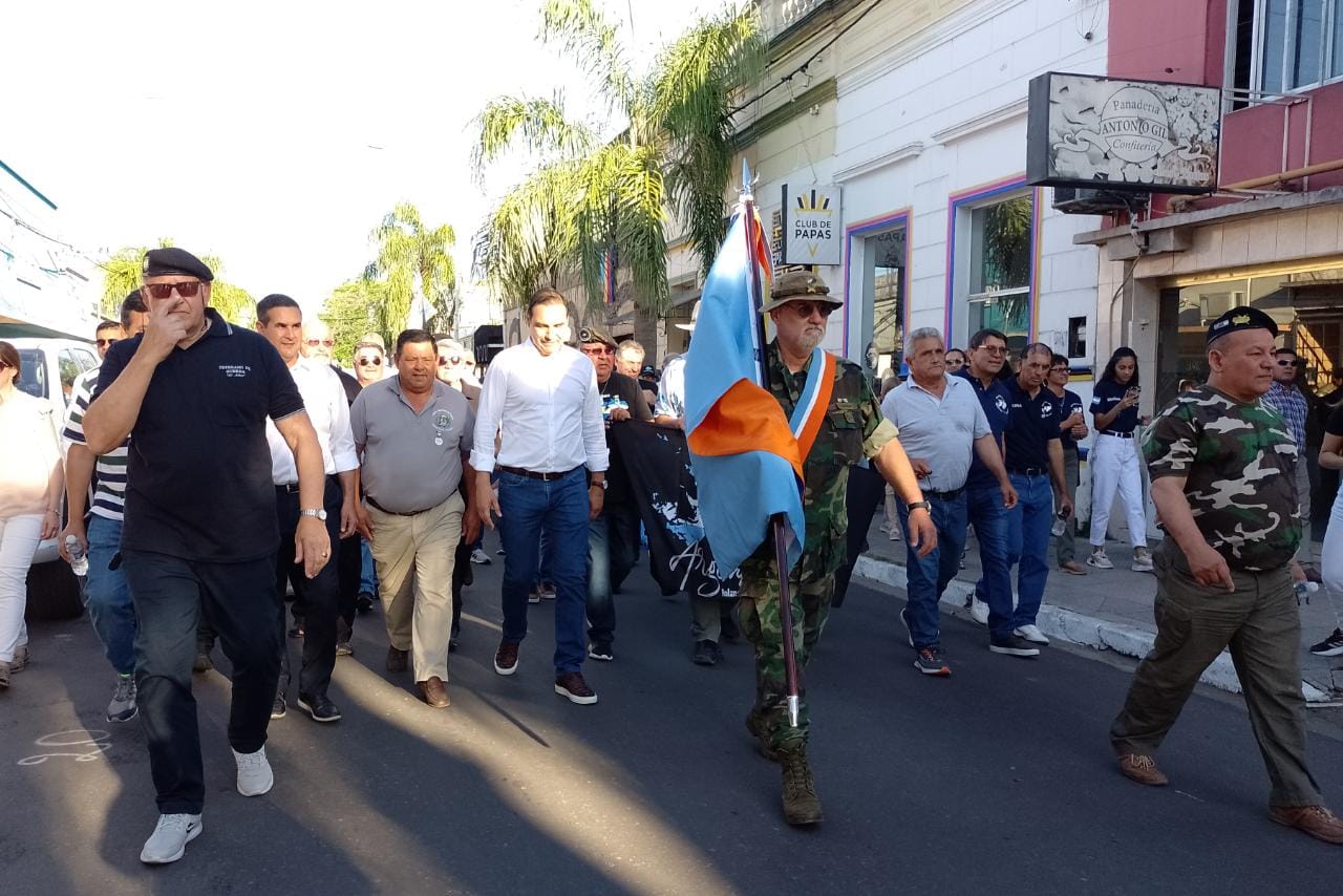 El gobernador de Corrientes, Gustavo Valdés, junto al intendente local José Irigoyen, vecinos e integrantes de la Banda de Música del Ejército, recorrieron casi 30 cuadras hasta llegar al Comando del Ejército.