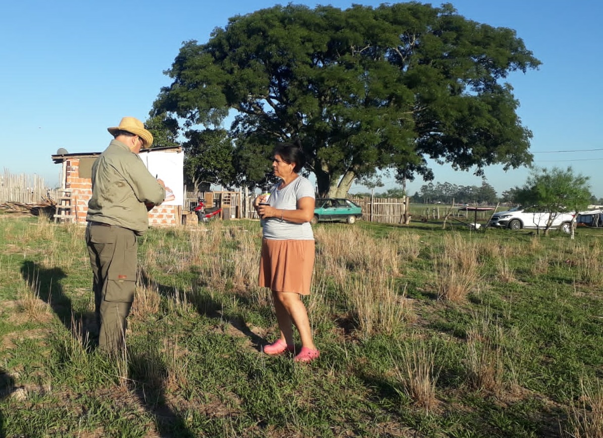 Equipo técnico del área Tierras Fiscales del Instituto Correntino del Agua y del Ambiente (ICAA), recorrieron lotes de la localidad de 9 de Julio informando a adjudicatarios sobre los avances del trámite de regularización dominial del lote en el que residen.