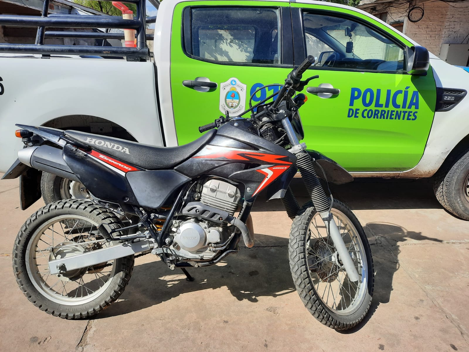 Efectivos Policiales de la Comisaria de Distrito Primera de Esquina, lograron recuperar una motocicleta- marca Honda, modelo XR250, Tornado-; la cual fuera denunciada como sustraída en el día de ayer y por lo cual aprehendieron a un joven de 24 años, quien en principio estaría relacionado en el presente ilícito.