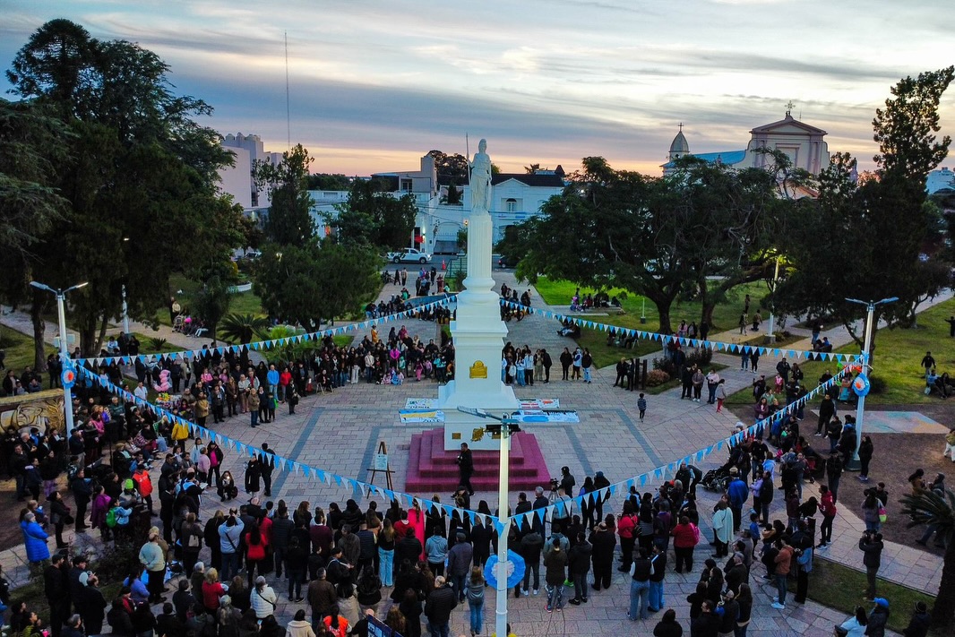 La estatua, que había sido destruida el pasado 29 de diciembre de 2023 por un fuerte tornado que azotó la ciudad, fue restaurada por el artista Miguel Jerónimo Villalba gracias al impulso de la Comisión Ad Hoc Camino al Bicentenario “Abrazos del Alma”. El acto incluyó el descubrimiento de una placa conmemorativa por la restauración.