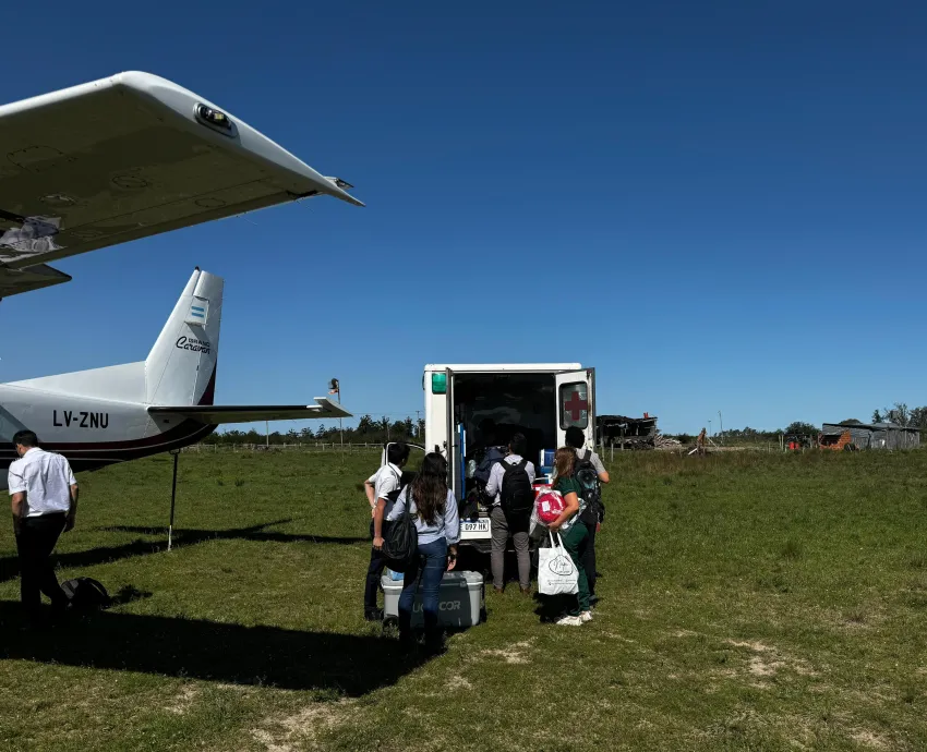 También, destaca el trabajo del equipo de la Dirección Provincial de Aeronáutica de Corrientes, quien posibilitó, por ser política de estado del gobernador Gustavo Valdes, que los pilotos Gonzalo Billordo y Carlos Godoy trasladen, con el avión sanitario de la provincia, al equipo del CUCAICOR desde Corrientes hacia Paso de los Libres en el menor tiempo posible.