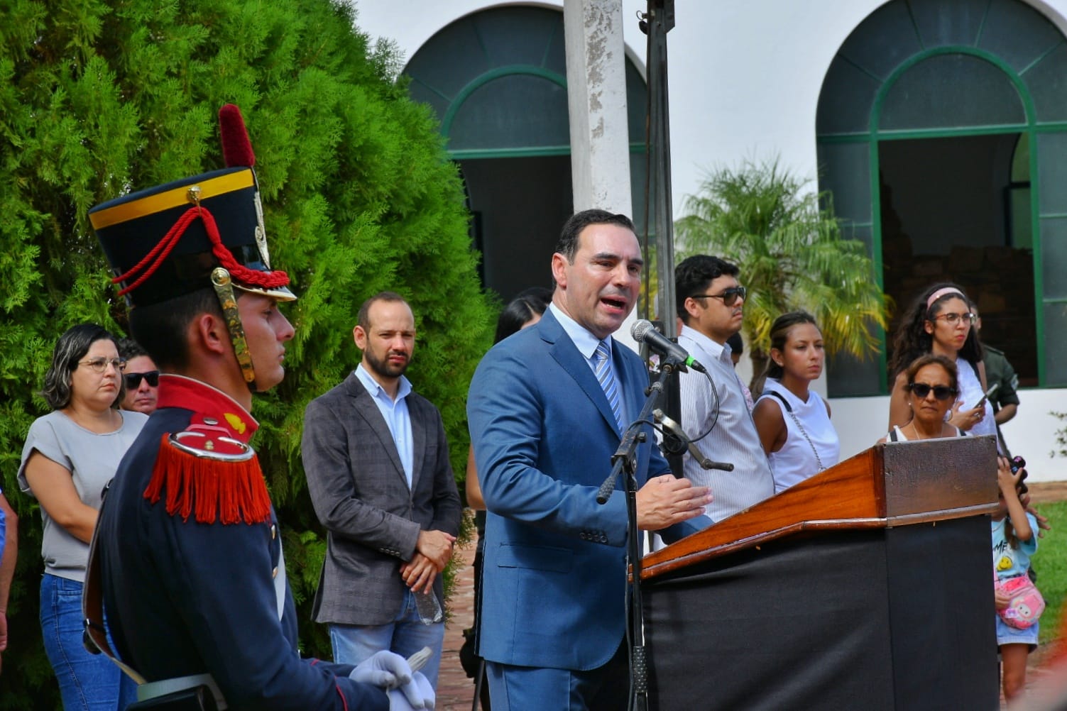 En el marco del acto, Valdés se dirigió inicialmente a las autoridades provinciales, civiles y militares; docentes, alumnos, Excombatientes en Malvinas, héroes argentinos y comunidad de Yapeyú presentes en la ceremonia.